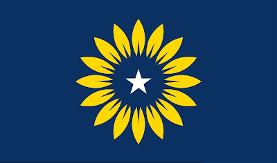 state banner.... The star in the center of the sunflower serves as a reference to the state motto of